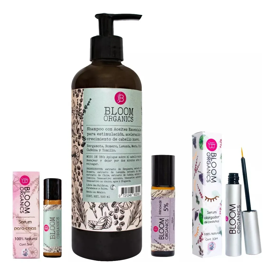 Estimulante Para Cabello Ceja Pestaña Bloom Organics 4 Pzas