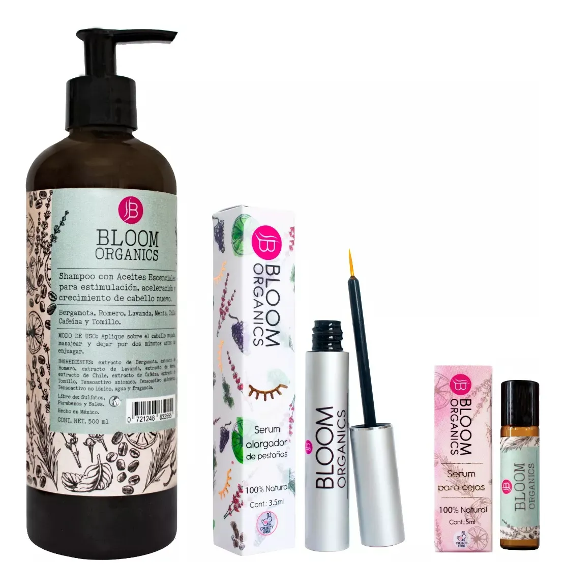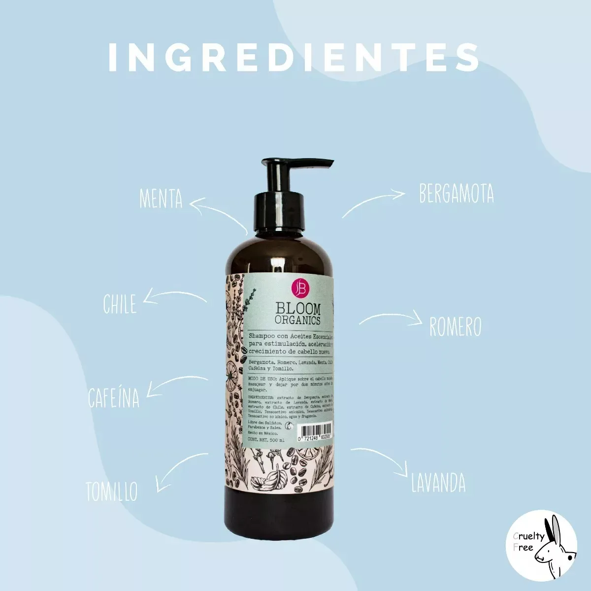 Bloom Organics® SHAMPOO hecho con aceites y extractos esenciales 100% naturales.