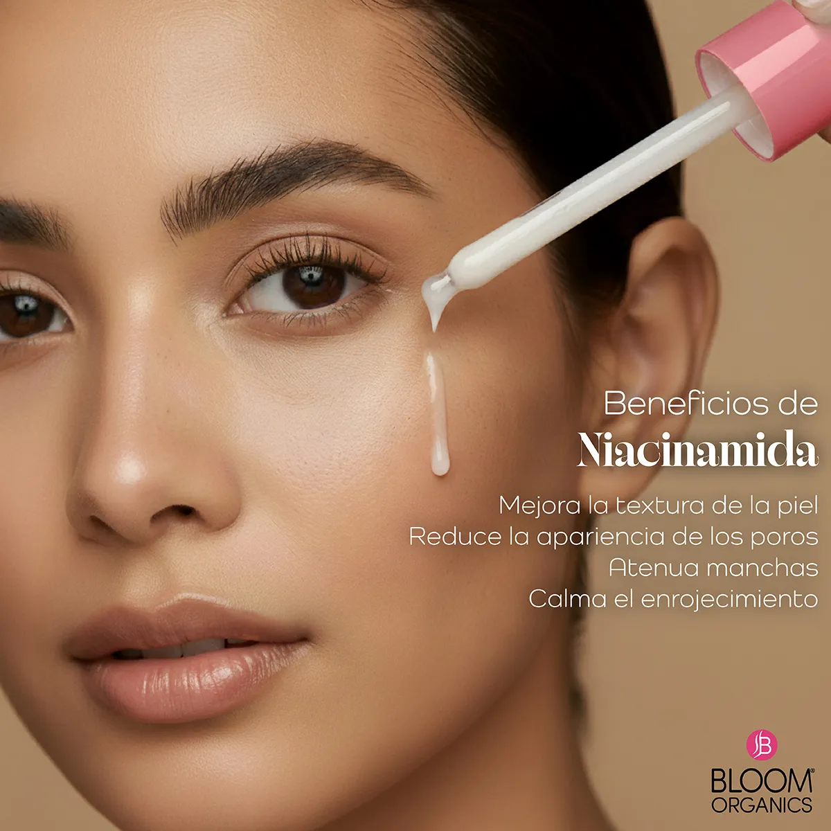 Control de Grasa, Poros y Antimanchas: La Niacinamida regula la producción de sebo y minimiza visiblemente la apariencia de los poros dilatados.